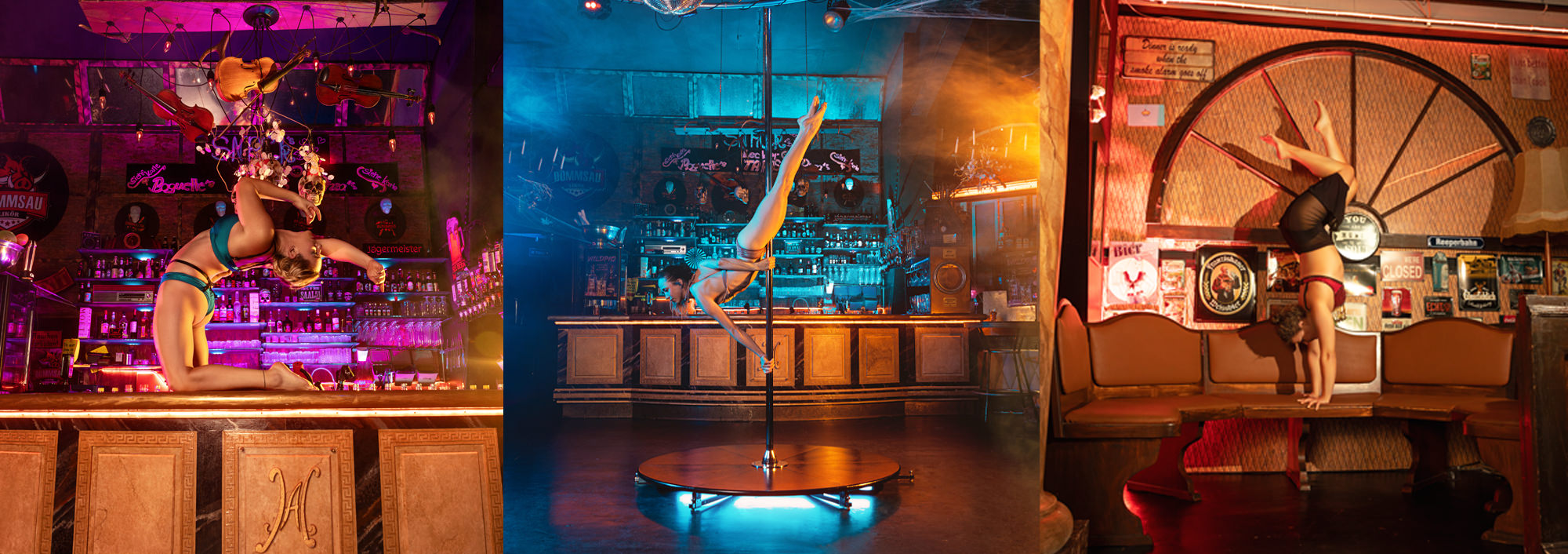 Du hast Lust auf eine außergewöhnliche Location mit einer Portion From Dusk till Dawn Flair? Dann lass dich von der elektrisierenden Atmosphäre dieses Nachtclubs inspirieren! Pose auf der Bar, im rockigen Sitzbereich und zeig deine Kraft und Sinnlichkeit an der Pole oder Lolliepop, während Nebel und Licht deine Tricks perfekt in Szene setzen. Jeder Moment wird mit bunten Lichtern zu einem unvergesslichen Bild. Komm und erlebe ein Shooting, das deine sexy oder athletischen Tricks und Posen mit der rockigen Club-Atmosphäre und einen edlen Style vereint!